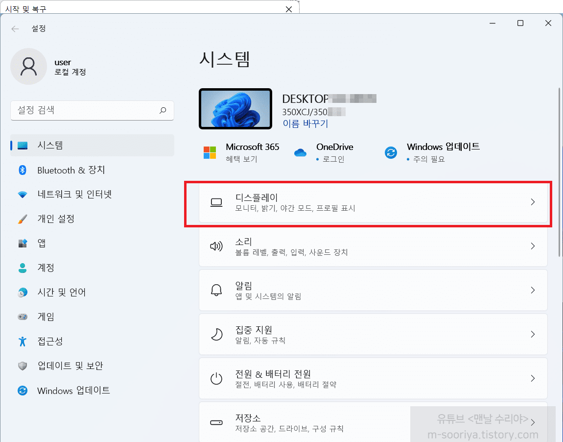 이어서 [디스플레이] 메뉴를 클릭합니다.