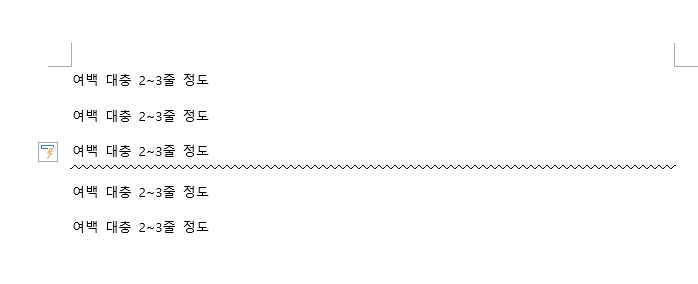 일단, 방금 생긴 물결선이라면 아래와 같이 [번개 모양 아이콘]이 있을 수 있습니다.
