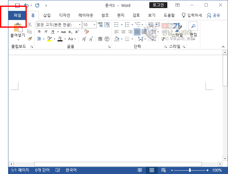 MS 워드 상단 메뉴의 [파일]을 클릭하십시오.