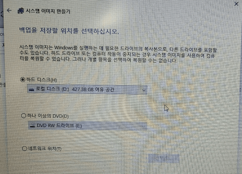 윈도우10 이미지 디스크 백업 및 복원 방법